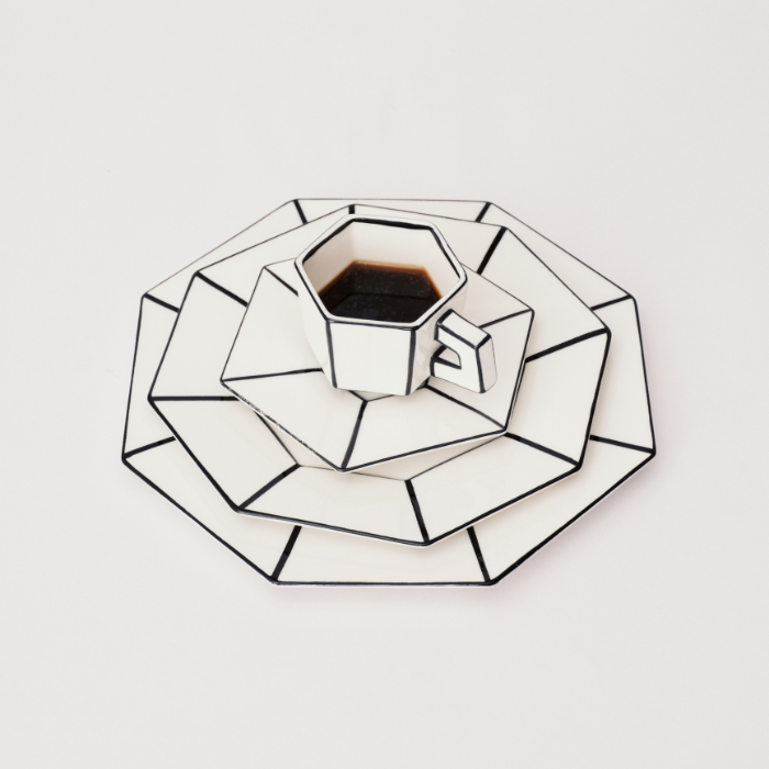 Pour une table qui sort du cadre, cette assiette à dessert en porcelaine blanche et noire d’Annebet Philips fait tout de suite la différence. Dans la collection Carte Blanche, la forme irrégulière, le bord comme plié et les lignes noires donnent à l’ensemble une allure très graphique, mais jamais figée. Une belle pièce pour servir un dessert, une pâtisserie ou une petite entrée, tout en donnant plus de personnalité à la table.