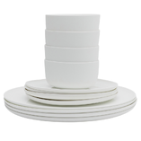 Dankzij de combinatie van twee formaten lage borden en een kom is deze diner set breed inzetbaar doorheen de dag. Een sterke keuze voor klanten die op zoek zijn naar een design serviesset, een witte serviesset of een vooraf samengestelde servies set in bone china porselein met een minimalistisch karakter.